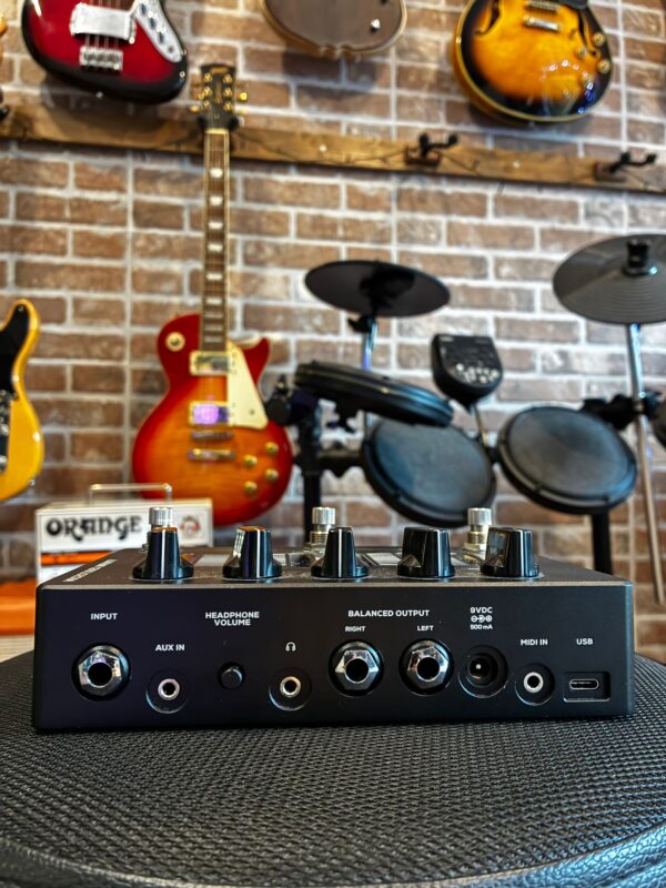 -Connettività: Input 1/4″, Input Aux, 2 Out bilanciate 1/4″ (sinistra e destra), XLR, uscita cuffie (1/8″)